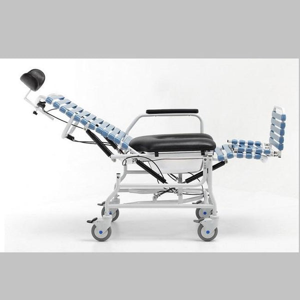 Broda Cs385 Revive Tilt & Recline Shower Commode [Cs385-18] is designed to provide exceptional comfort with both tilt and recline positioning and for clients who are caregiver dependent for their shower and commode needs. Revive tilt & recline shower commode chair comes with unique comfort tension seating system which provides comfort, and ease of cleaning within the shower environment.