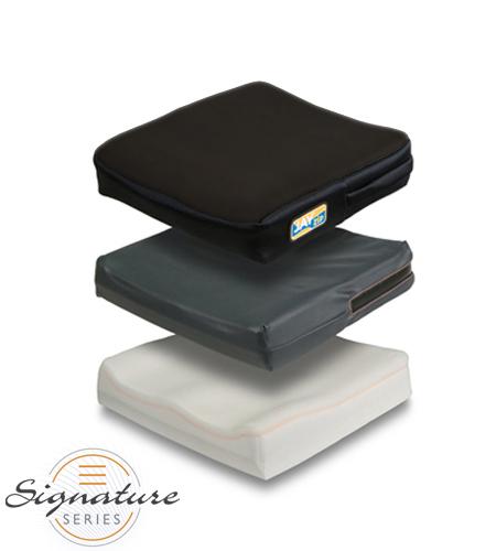 The Zip cushion's dual-layered foam base combines structural support and comfort. Typically, a child using an 8" wide cushion may require a slightly softer foam than a child using a 14" wide cushion. For this reason, the firmness of the Zip's foam base increases with the cushion width.