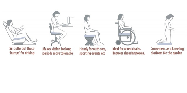 Designed to reduce pressure as well as provide an ideal supportive base for anyone confined to sitting for long periods of time on a seat or chair