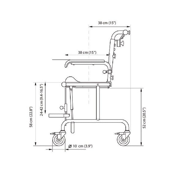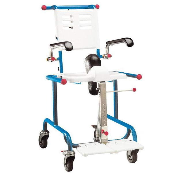 Tripp is a shower commode chair with the tilt mechanism on the left side. Tilting from the side enhances an ergonomically correct work position and enables eye contact during the tilting process.The size of Tripp makes it the perfect shower commode chair for children, teenagers and slender adults. Furthermore, both seat and back support can easily be removed. This enables fitting of an individual seat unit.