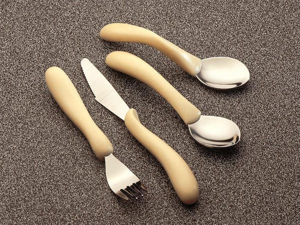 - The knife and fork have a shaped indent on the top for the index finger, to help with directional control