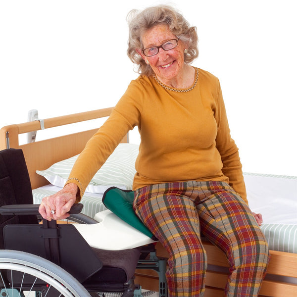 The transfer board is intended to bridge shorter gaps when performing seated transfers. The board’s low friction upper surface allows the user to transfer independently or with assistance. Immedia Transfer Boards are used when transfering between bed and wheelchair / shower chair, between wheelchair / chair / toilet chair or to and from the car. All Transfer Boards have a non-slip surface on the underside. Combining a transfer board with a glide cushion provides even lower friction and is recommended when the transfer involves bare skin, for instance to and from a shower chair or toilet.Immedia Butterfly is a long, wide and stable transfer board. It has cut outs for positioning against the wheel of a wheelchair and non-slip pads on the underside which allows for good positioning and avoids sliding out of place.