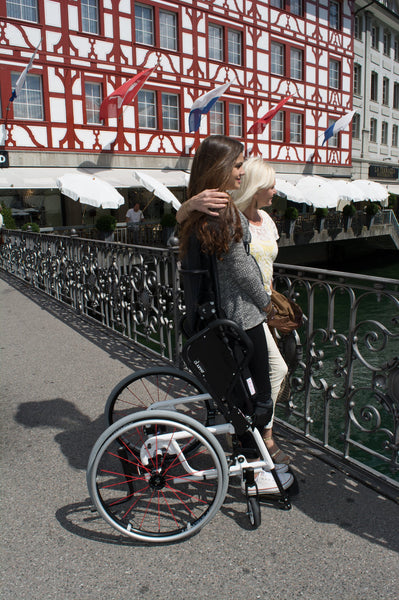 You have an active life and want a wheelchair that keeps up with you and meets your demands. No matter the place or situation, the LEVO LAE manual standing wheelchair guarantees you maximum mobility. Add the opportunity to sit, stand or position at all the angles in between and you are ready to elevate at work, sit for dinner or join your friends at the bar. With the LEVO LAE you choose the extent – and level – of participation.