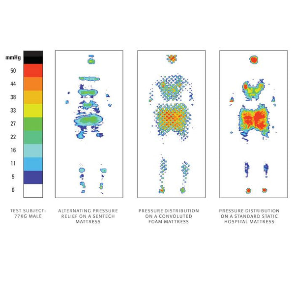 The SenTech Stage IV Millennium 3 is a microprocessor controlled therapeutic mattress replacement system that features 3 zone control, alternating pressure, flexible air floatation, and low air loss therapies. The therapies can be combined or operated independently for optimal and customised control.