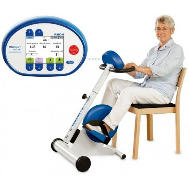 The MOTOmed viva2 light offers high quality standard functions for a safe movement with paralysis or spasticity. The MOTOmed viva2 light contains the basic device functions, adjustments and training feedback.