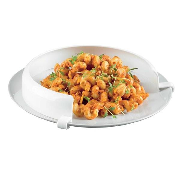 - Three clips attach it to the rim and create a high inward sloping face to help with food collection and prevent spillage.