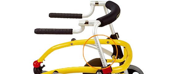 Crocodile aims for harmony, balance and rhythm. Placed behind the child, the frame allows freedom of movement and facilitates walking in the upright position. The adjustable handles can be individually adapted to a position conveniently close to the child’s body providing maximum support and stability.