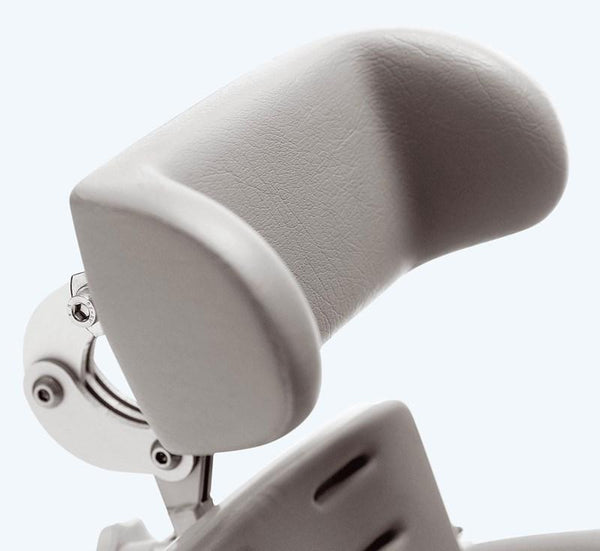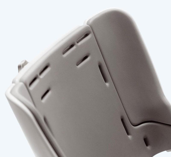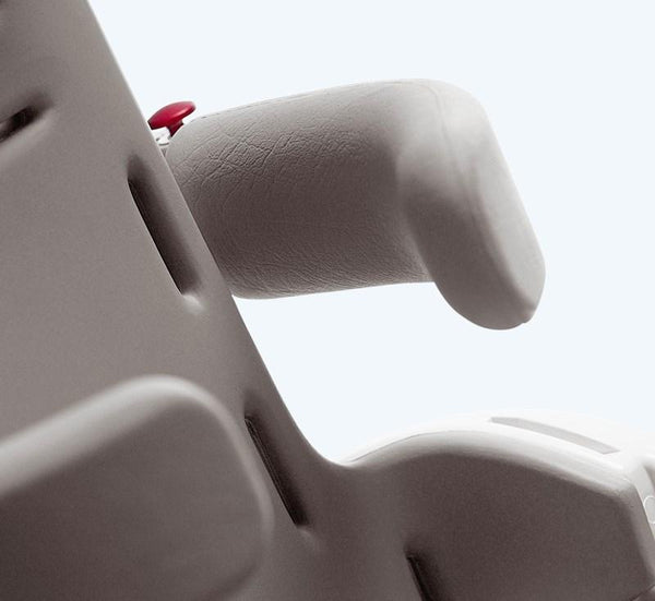 As standard the Flamingo seat is delivered with a narrow open backrest. For more support for the trunk either swing-away side supports can be mounted or upholstered sides which surround and support the shoulders can be used.