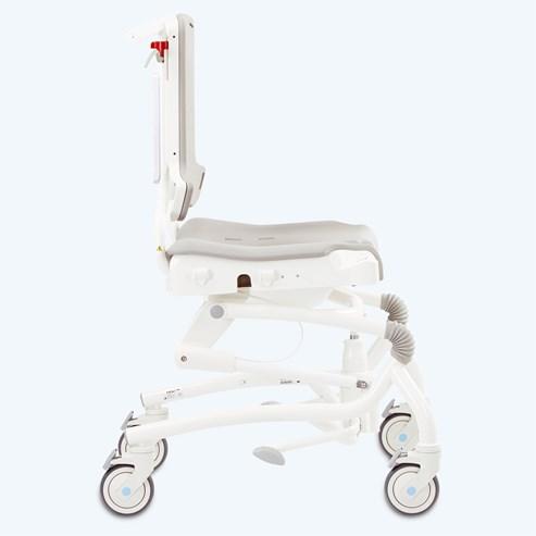 The Heron can be used freestanding with a pan, directly over the toilet or as a bathing chair in the shower. The smooth height, tilt and recline functions ensure optimum working conditions for the carer. To maintain safety, the Heron is equipped with four lockable casters.