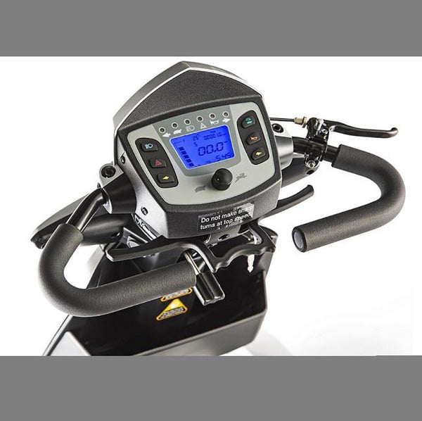 The Merits Explorer 4 wheels is a robust, modern large-size scooter with numerous deluxe features including the powerful 4-pole motor, LCD display, full suspension system with shock absorbers, 12v power socket and automatic speed reduction when turning.