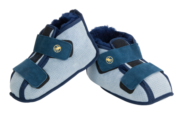 The Short Slipper Boot has Velcro straps across the heel and the top of the foot to make it easy to put on and remove, and can be adjusted to accommodate for foot swelling.