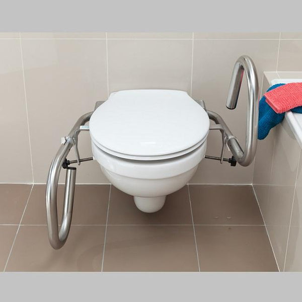 It provides support close to the body, enabling the user to lower and rise safely when using the toilet.