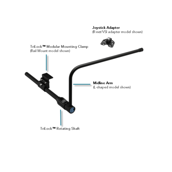 The Tri-Lock™ Mounting Clamp is an essential component for mounting the Tri-lock™ Rotating Shaft to the power chair. It is strong, resists slipping on round armrests and can be installed on either the left or right side. The height adjustable clamp comes in a rail mount or a tube mount version. The rail mount allows easy installation to Permobil Unitrack and Pride T-slotted armrests.
