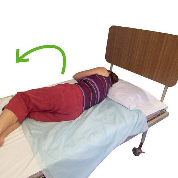 The Turn Yourself Sheet may help these people with limited strength but good mental ability. The Turn Yourself Sheet will reduce the friction under the shoulders and hips when turning.